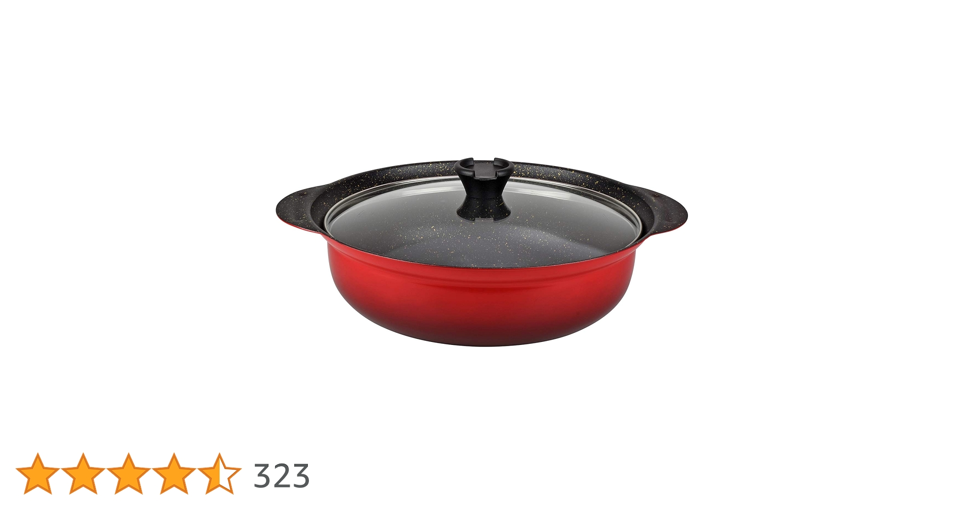 和平フレイズ 土鍋より軽くて丈夫 マーブルコート 焼付塗装 卓上鍋 30cm 10号サイズ 5-6人用 IH・ガス対応 ガラス蓋付 紅丈膳 RB-1677