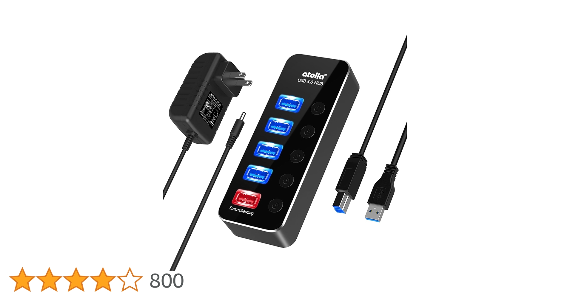 USB3.0ハブ 電源付き atolla USB ハブ 5ポート【USB3.0ポート*4+充電ポート*1】USBハブ セルフパワー/バスパワー USB HUB アルミニウム・独立スイッチ付き USB3.0 拡張 5Gbps高速データ伝送 Android/Windows/MacBook/Mac/Surface Pro等システムとノートPC対応